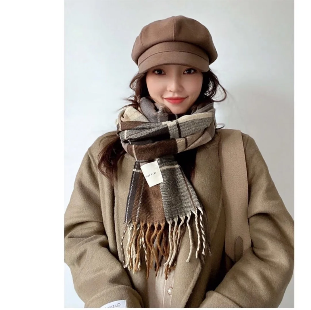 Scarf women 2021 new autumn and winter thick imitation cashmere scarf double-sided striped warm big shawl plaid Outdoor