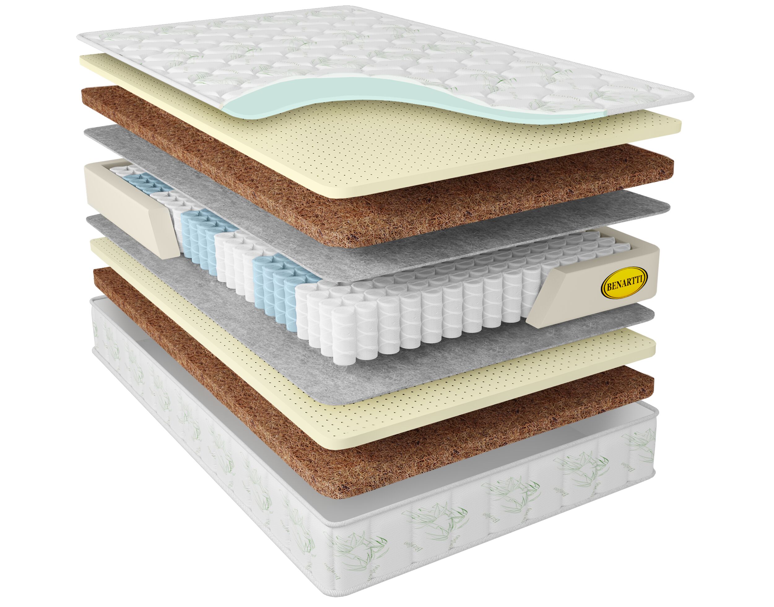 Матрас Benartti Memory Dream Max Cocos Duo S1200 200х180, Бежевый;белый;серый;серебристый, Memory Max Cocos Duo S1200