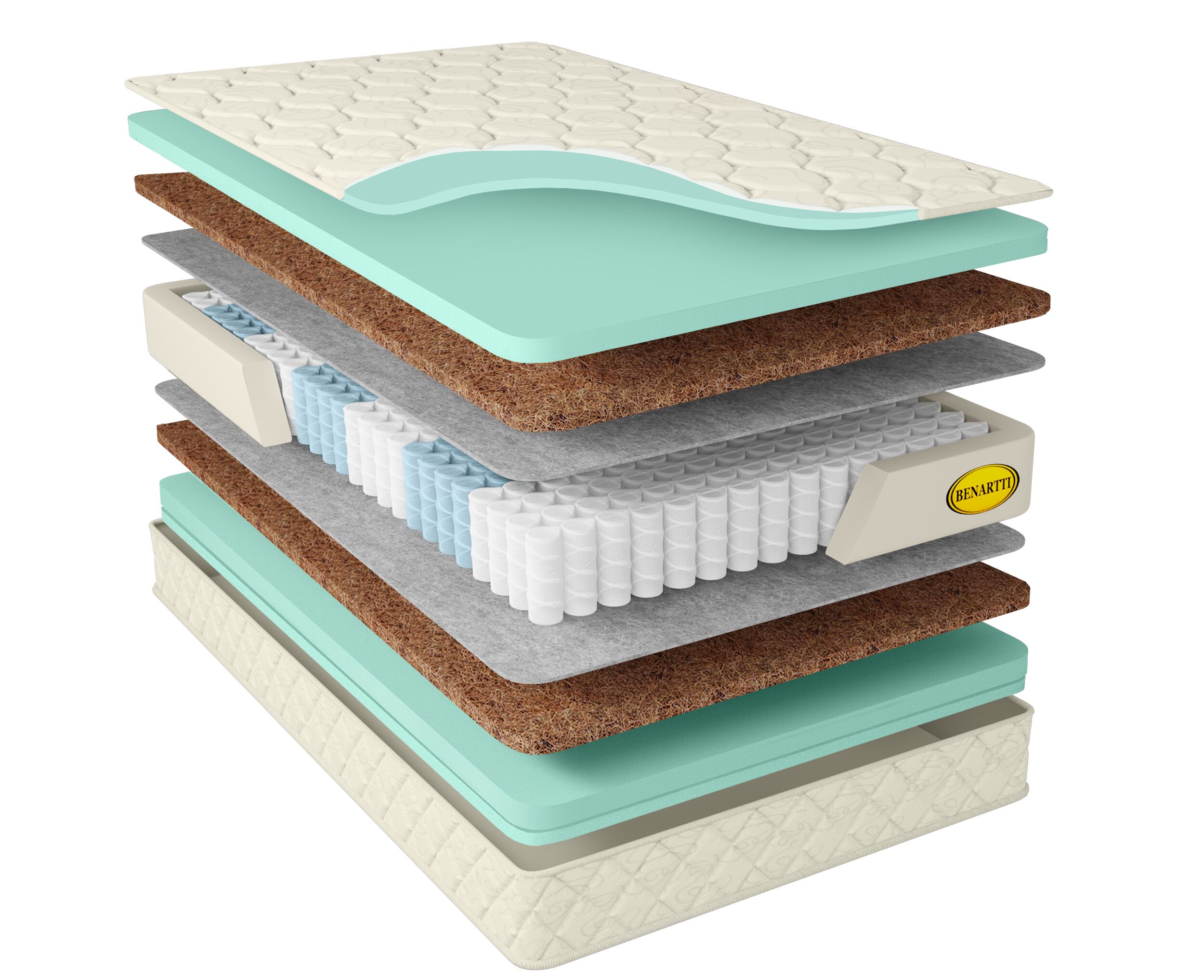 Описание:Основой матраса является независимый пружинный блок S1000. Каждая пружина находится в отдельном тканевом кармашке, что позволяет правильно распределять нагрузку тела.Для дополнительной защиты пружинного блока добавлен изоляционный слой из термовойлока, разделяющий наполнители матраса и пружин.С каждой стороны матраса расположен слой искусственного латекса 3 см и слой кокосовой койры толщиной 2 см, придающий дополнительную жесткость и долговечность матрасу.Ткань обработана специальной антибактериальной пропиткой Sanitized (Швеция).Пропитка обеспечивает полное уничтожение плесневых грибков, не дает развиваться микроорганизмам, пылевым клещам и микробам.Усиленный периметр из пены повышенной плотности существенно повышает срок службы матраса.Наполнение:Чехол ("Optimal". Антибактериальная пропитка чехла).Латекс искусственный - анатомическая пена 3 см.Кокосовая койра - латексированное кокосовое волокно 2 см.Термопресованный войлок от 0,5 см.Независимый пружинный блок Мультипакет ("Multipocket S1000". Усиление "пенополиуретан по периметру").Термопресованный войлок от 0,5 см.Кокосовая койра - латексированное кокосовое волокно 2 см.Латекс искусственный - анатомическая пена 3 см.Чехол ("Optimal". Антибактериальная пропитка чехла).
