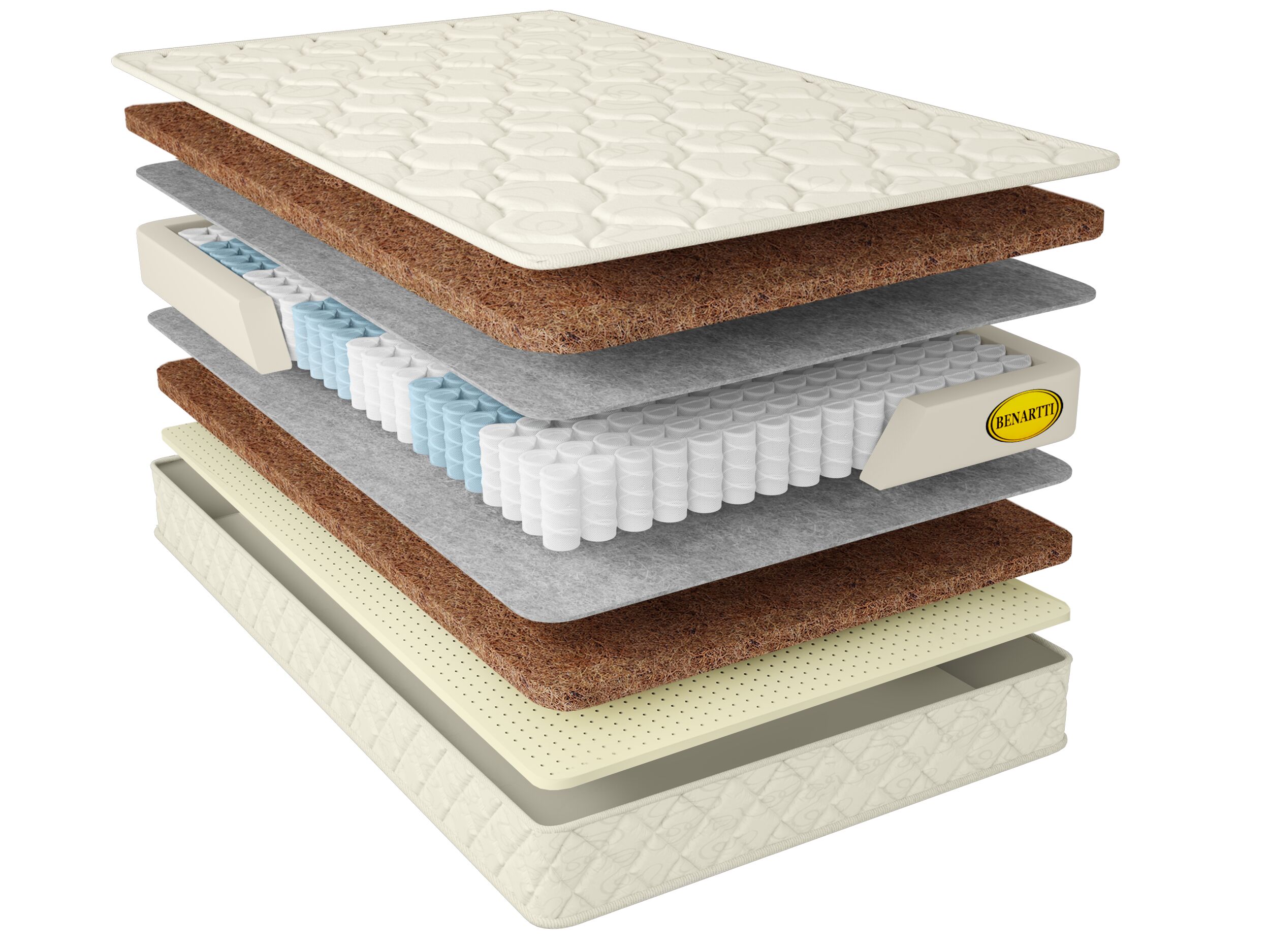 Матрас Benartti Premium Prime Orto TFK 105х200, Бежевый;белый;серый;серебристый, Prime Orto TFK