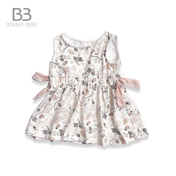 cotton cartoon printed dress women's bow children's summer princess sleeveless skirt, White
