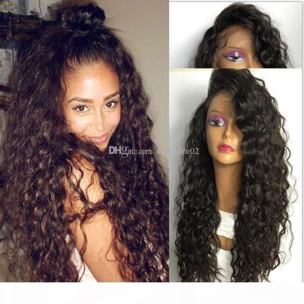 full lace human hair wigs for black women glueless front lace human hair wigs peruvian virgin hair water wave lace wigs, Black;brown