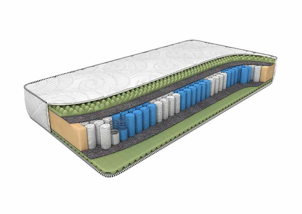 Описание:Наполнитель Ergo Foam высокоэластичная пена с массажным эффектом и высокой анатомичностью.Модель смонтирована на современном высокотехнологичном пружинном блоке Smart Zone, усиливающим массажный эффект и позволяющим выдерживать нагрузку до 150 кг на одно спальное место.Изолирующий слой из термовойлока защищает наполнитель от контакта с металлом пружин, продлевая срок эксплуатации матраса.В комплект входит чехол из приятной на ощупь трикотажной ткани, которая успокаивающе действует на психику человека и легко пропускает воздух, позволяя телу свободно дышать.Наполнение:Чехол ("SofTech").Латекс искусственный - анатомическая пена 3 см ("ErgoFoam". С массажным эффектом).Термопресованный войлок от 0,5 см.Независимый пружинный блок ТФК 14 см ("TFK Smart Zone". Усиление "пенополиуретан по периметру". 5 зон жесткости).Термопресованный войлок от 0,5 см.Латекс искусственный - анатомическая пена 3 см ("ErgoFoam". С массажным эффектом).Чехол ("SofTech").