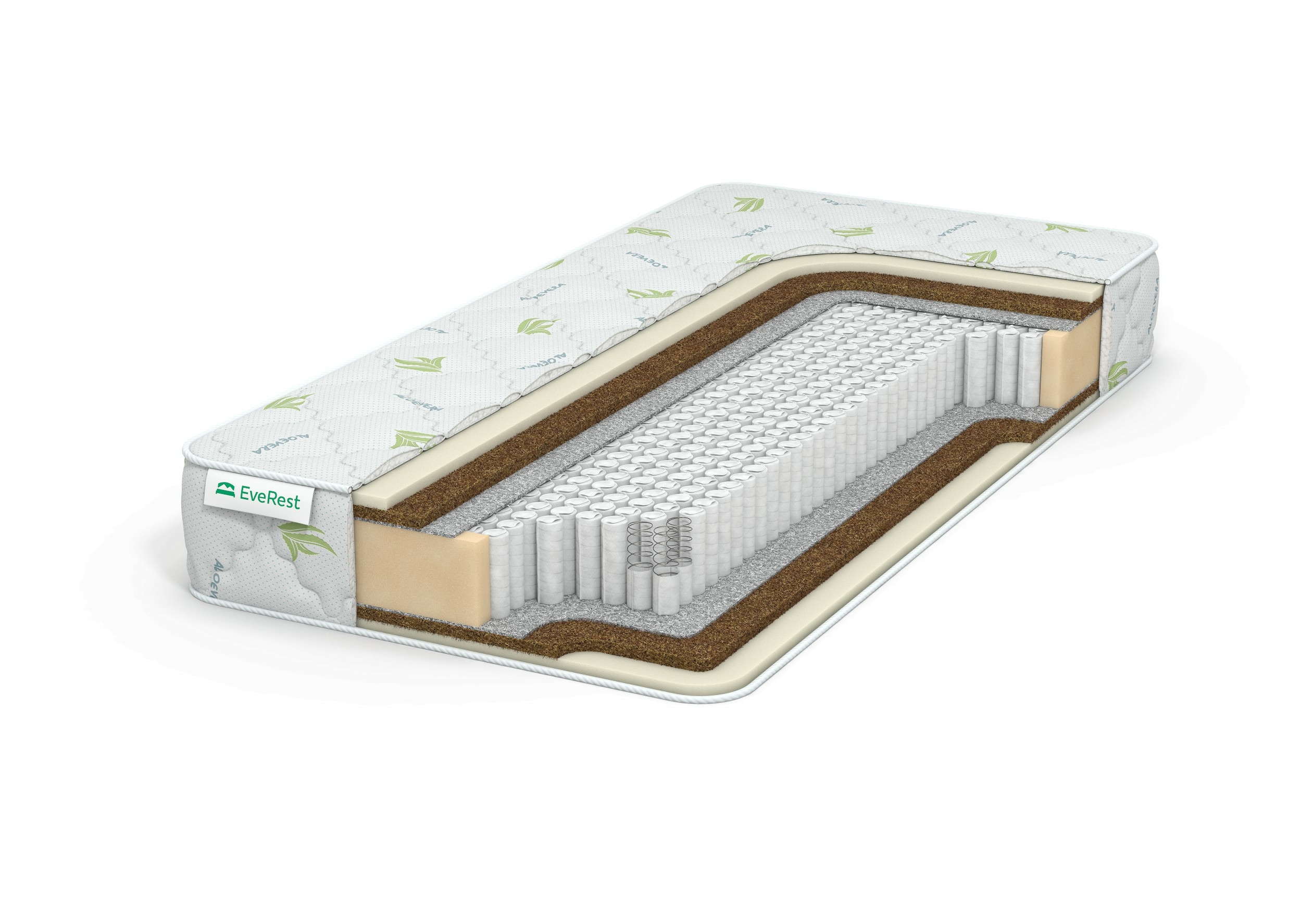 Наполнение:Чехол ("Aloe Vera").Латекс искусственный 2 см (пенополиуретан).Бикокос 2 см (полиэфирное кокосовое волокно).Войлок от 0,5 см.Пружинный блок ("S1000", с усилением по периметру).Войлок от 0,5 см.Бикокос 2 см (полиэфирное кокосовое волокно).Латекс искусственный 2 см (пенополиуретан).Чехол ("Aloe Vera").Описание:Пружинный матрас с ортопедическими свойствами средней жесткости с искусственным латексом на спальных поверхностях и настилами бикокоса.Основа модели блок "S1000" из адаптивных микропружин, точечно реагирующий на нагрузки. Жесткость матрасу придает бикокосовые плиты, изготовленный из койры и холлофайбера. Такой материал эластичнее кокосовой койры. От истирания пружинами бикокос защищен войлоком. Мягкость спальному месту с двух сторон придает искусственный латекс. Это плотный пенополиуретан, по свойствам похожий на природный аналог.Чехол матраса изготовлен из хлопкового прочного трикотажа с антисептической пропиткой "AloeVera".