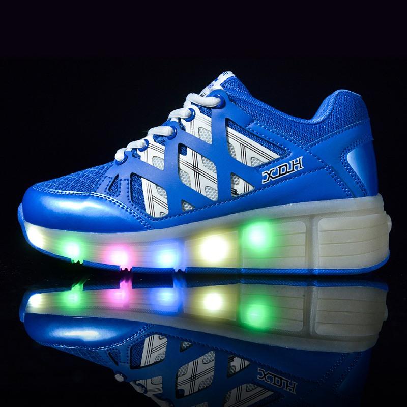 LED usb charging roller shoes glowing light up luminous sneakers with wheels kids rollers skate shoes for boy girls, Black