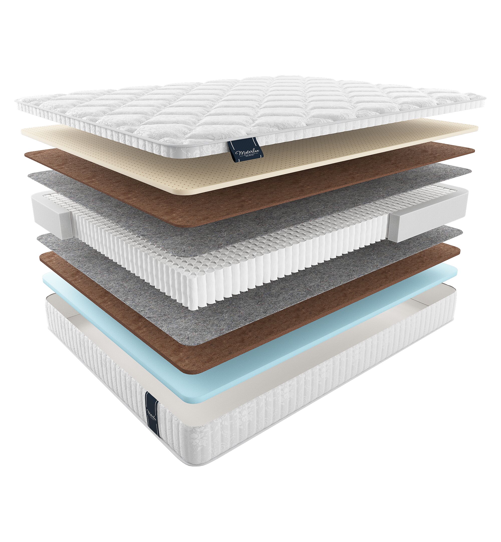 Описание:Обе стороны матраса укомплектованы латексированным кокосом для достижения средней жесткости. Натуральный латекс и универсальная пена Natural Foam придают изделию эластичность и комфорт, а спящему дарят уютное ощущение заботы.Матрас снабжен независимым пружинным блоком "Мультипакет" (1040 пружин на спальное место). Он позволяет матрасу максимально хорошо подстраиваться под контуры тела и равномерно распределять нагрузку.Для дополнительного комфорта матрас усилен каркасом 10 см по периметру, что дает ряд дополнительных преимуществ: он прекрасно держит вес, хорошо восстанавливается после нагрузки, а срок его службы становится больше.Идеальный матрас для тех: кто является обладателем значительного веса; испытывает дискомфорт во время сна из-за разницы в весе между партнерами; предпочитает довольно плотные матрасы с ортопедическими характеристиками, спортсменам, любителям йоги; людям любого возраста для идеальной поддержки позвоночника; пожилым людям для комфортного сна.Эта модель идеально подойдет для полноценного отдыха и комфортного сна. Благодаря идеальному сочетанию разных наполнителей мышцы прекрасно расслабляются за ночь, а позвоночник находится в физиологически правильном положении.Наполнение:Чехол ("Termini". Ручки для переворачивания. Аэраторы).Натуральный латекс 2 см (Бельгия).Кокосовая койра - латексированное кокосовое волокно 1 см (плотность 85 кг/куб.м.).Термофиксированный фетр от 0,5 см.Независимый пружинный блок Мультипакет 14 см ("Multipocket". Усиление "пенополиуретан по периметру плотностью 22 кг/куб.м. и толщиной 10 см").Термофиксированный фетр от 0,5 см.Кокосовая койра - латексированное кокосовое волокно 1 см (плотность 85 кг/куб.м.).Латекс искусственный - анатомическая пена 2 см ("Natural Foam", плотность 22 кг/куб.м.).Чехол ("Termini". Ручки для переворачивания. Аэраторы).