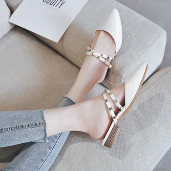 AME Summer Flats Mules Lady Sandals Slippers Rivet Slip On Pointed Toe Women Mules Outdoor Slipper Woman Slides 11813AJS2818