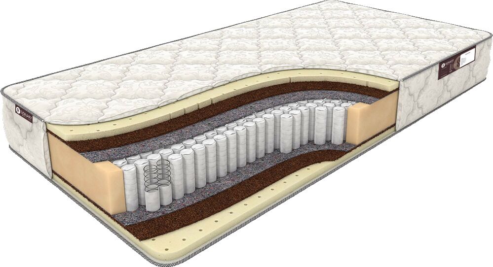 Описание:Матрас Aldan - надёжный и долговечный матрас с достаточным запасом прочности, который идеально подходит для постоянного и ежедневного использования.Данная модель изготавливается на высокотехнологичном пружинном блоке S1000 (500 пружин на м2), что позволяет без труда справляться с нагрузкой в 140 кг на одно спальное место и отлично подходит для двух спящих с разницей в весе свыше 25 кг.Матрас Aldan с одинаковой жесткостью по обеим сторонам - изготовлен из экологически чистых, натуральных наполнителей.Сочетание натурального перфорированного латекса (2 см) ближе к поверхности и следующей за ним латексированной кокосовой койры (1 см) с каждой стороны изделия делает данную модель сбалансированной по степени жесткости и уровню анатомичности.Каждый перечисленный слой играет важную роль в эксплуатации данной модели матраса.Латекс - это слой, принимающий первоначальную нагрузку и способствующий расслаблению.Кокосовая койра выступает слоем поддерживающим - наиболее равномерно распределяет нагрузку на пружинный блок и не позволяет погружаться в глубь матраса.Наполнение:Чехол ("Elite". Антибактериальная пропитка чехла).Натуральный латекс 2 см.Кокосовая койра - латексированное кокосовое волокно 1 см.Термопресованный войлок от 0,5 см.Независимый пружинный блок Мультипакет ("Multipocket S1000". Усиление "пенополиуретан по периметру").Термопресованный войлок от 0,5 см.Кокосовая койра - латексированное кокосовое волокно 1 см.Натуральный латекс 2 см.Чехол ("Elite". Антибактериальная пропитка чехла).