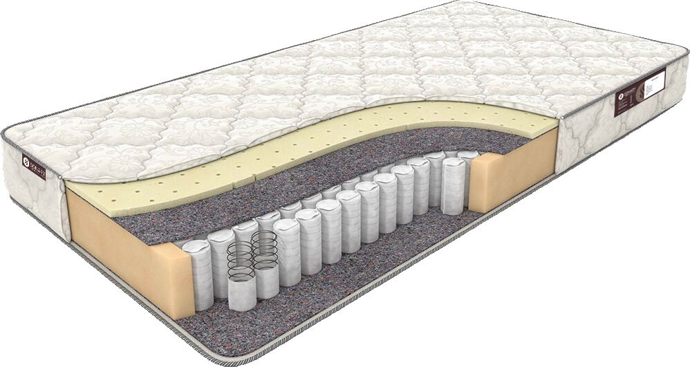Описание:Простота и комфорт без лишней жёсткости.Наполнитель данного матраса - это натуральный латекс, обладающий высокой анатомичностью, то есть способностью материала принимать форму тела. Это позволяет мышцам человека, лежащего на матрасе, полностью расслабиться, что является необходимым условием комфортного отдыха.Независимый пружинный блок TFK, призванный гасить нежелательные колебания поверхности, усиливает ортопедический эффект конструкции и способствует глубокому, здоровому сну.Защитная прослойка из натурального льноджутового волокна не только защищает кокосовую койру от трения о металл пружин, но и сама может выполнять роль койры, поскольку для сохранности формы матраса.Наполнение:Чехол ("Elite". Антибактериальная пропитка чехла).Натуральный латекс 2 см.Термопресованный войлок от 0,5 см.Независимый пружинный блок ТФК ("TFK". Усиление "пенополиуретан по периметру").Термопресованный войлок от 0,5 см.Чехол ("Elite". Антибактериальная пропитка чехла).