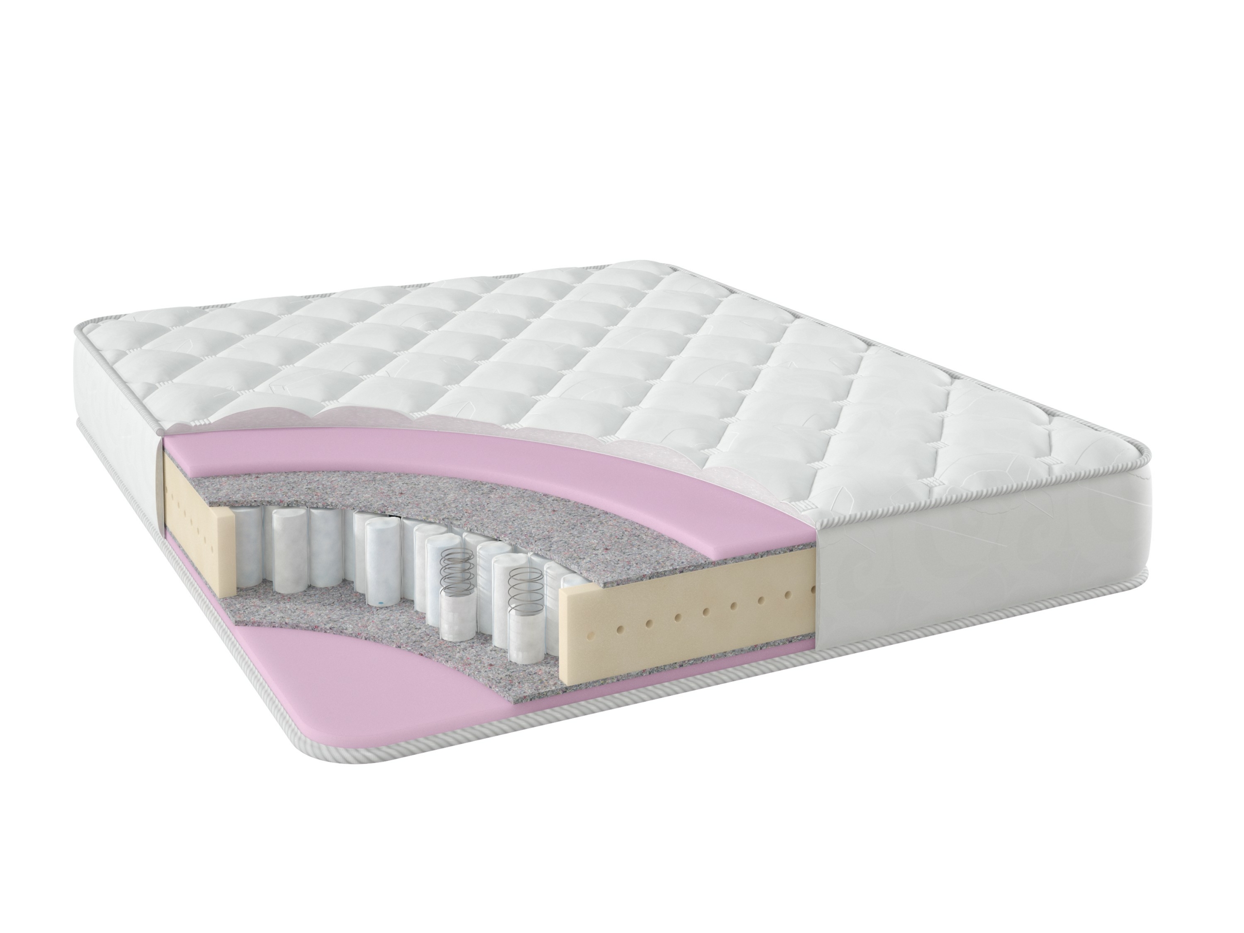 Наполнение:Чехол.Латекс искусственный - анатомическая пена 2 см.Термопресованный войлок от 0,5 см.Независимый пружинный блок ТФК ("TFK". Усиление "пенополиуретан по периметру").Термопресованный войлок от 0,5 см.Латекс искусственный - анатомическая пена 2 см.Чехол.