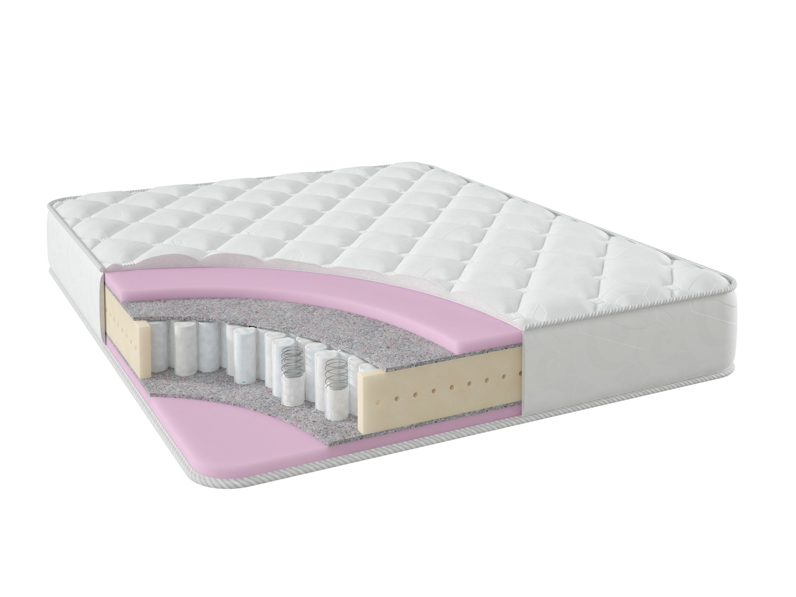 Наполнение:Чехол.Латекс искусственный - анатомическая пена 3 см.Термопресованный войлок от 0,5 см.Независимый пружинный блок ТФК ("TFK". Усиление "пенополиуретан по периметру").Термопресованный войлок от 0,5 см.Латекс искусственный - анатомическая пена 3 см.Чехол.