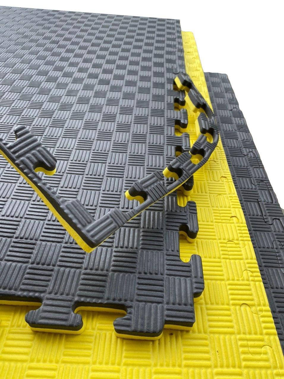 Мат татами ласточкин хвост 1000х1000х20мм EVA черно-желтый