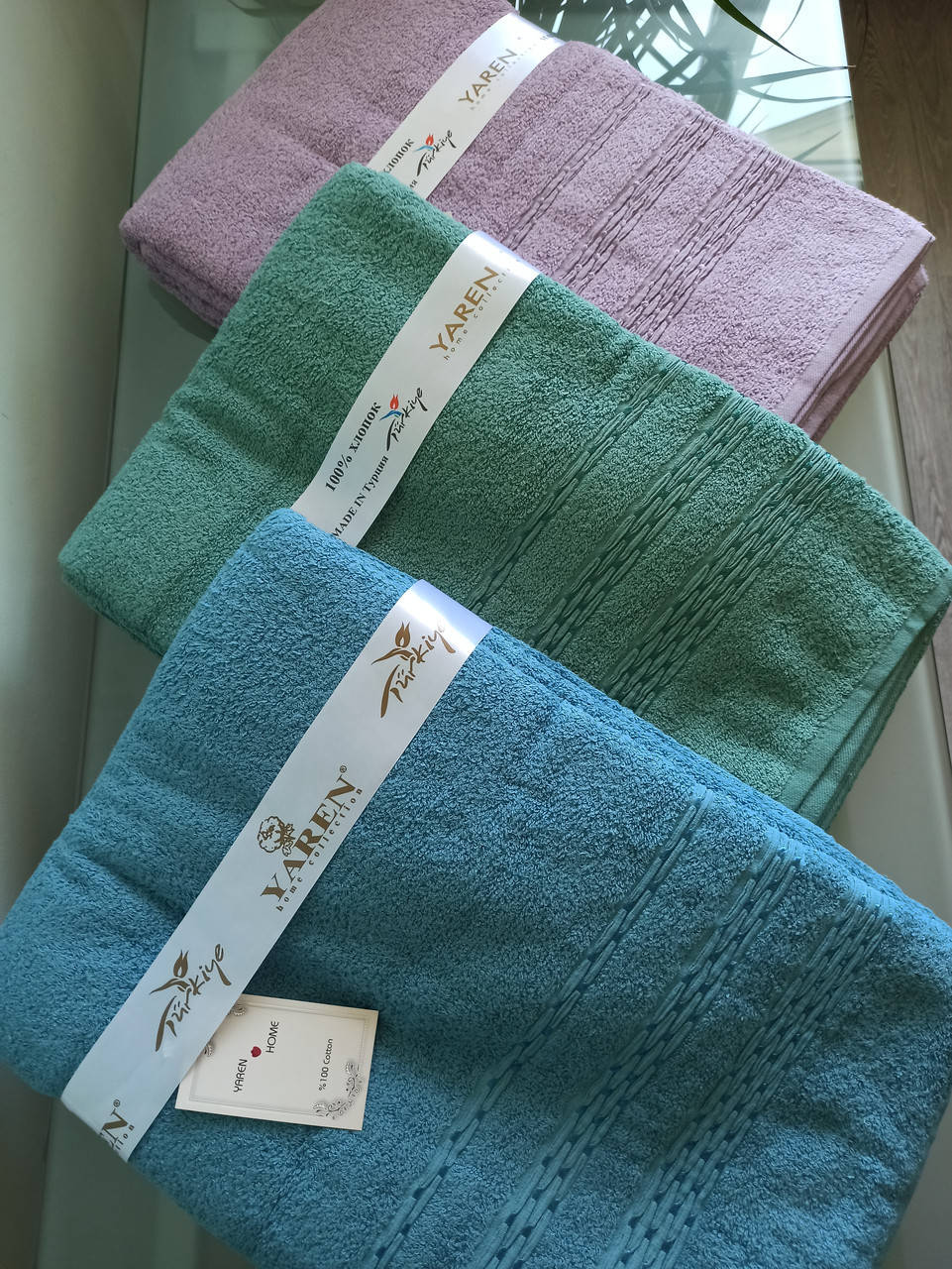 Махровые простыни средней плотности, хлопковые, приятные на ощупь, широкая радужная палитра, модель унисекс.