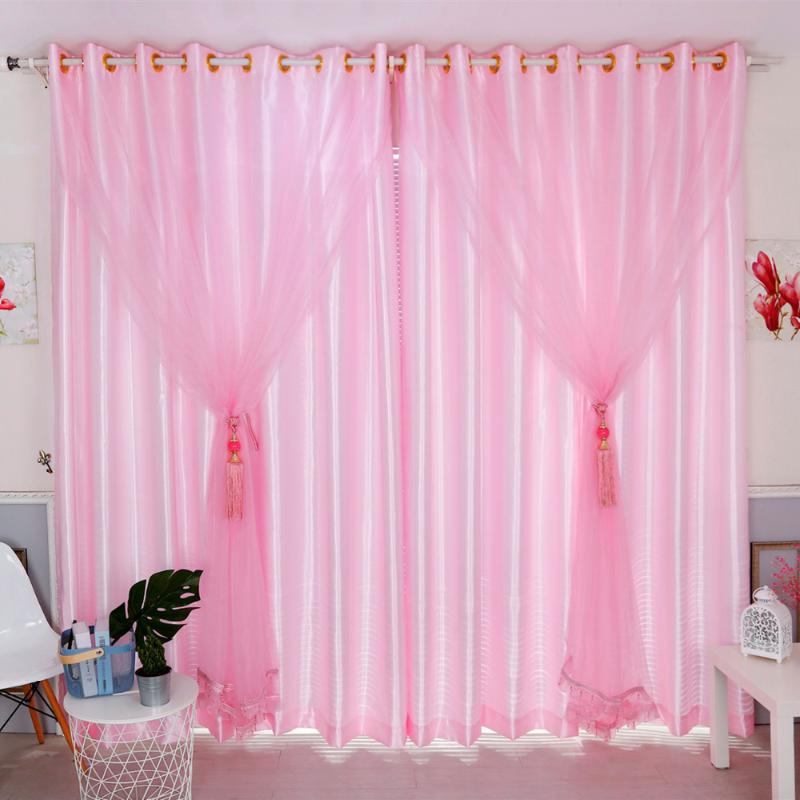 Latest 4 Colors Elegant Pink Floral Sheer Beads Window Curtain for Living Room Golden Tulle Cortinas Organza Salon, Solid pink