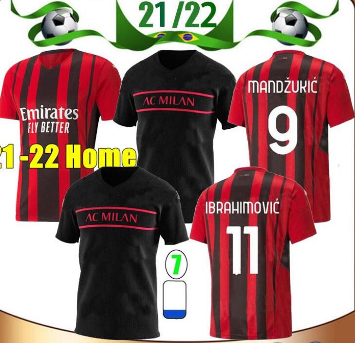 21/22 AC milan #11 IBRAHIMOVIC Soccer Jersey 2021 THEO REBIC Shirt PAQUETA TONALI ROMAGNOLI CALHANOGLU CUTRONE KESSIE Football uniform Men&#, White;black