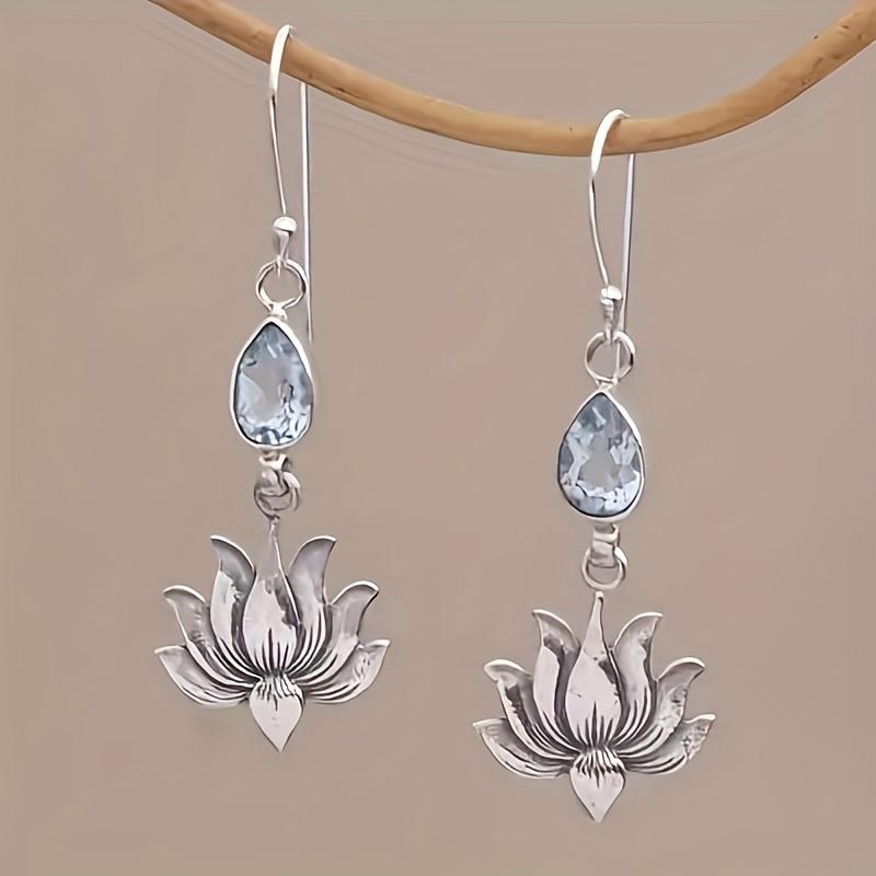 Маленькие и шикарные серьги в стиле лотоса, элегантные синие серьги-подвески в старинном стиле в форме капли воды для женщин
