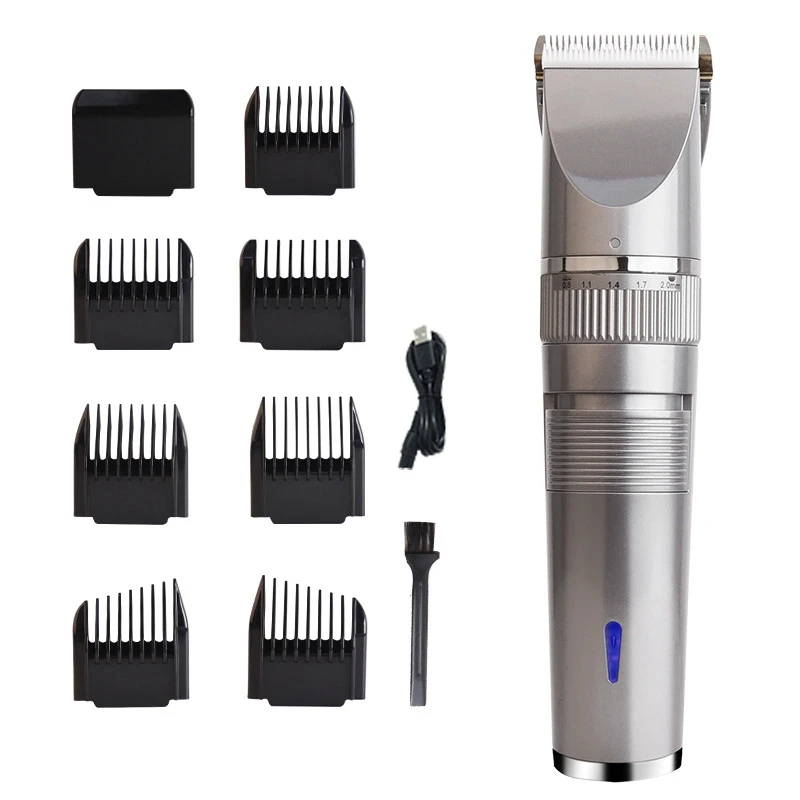 Машинка для стрижки волос Серебристая перезаряжаемая с зарядкой от USB