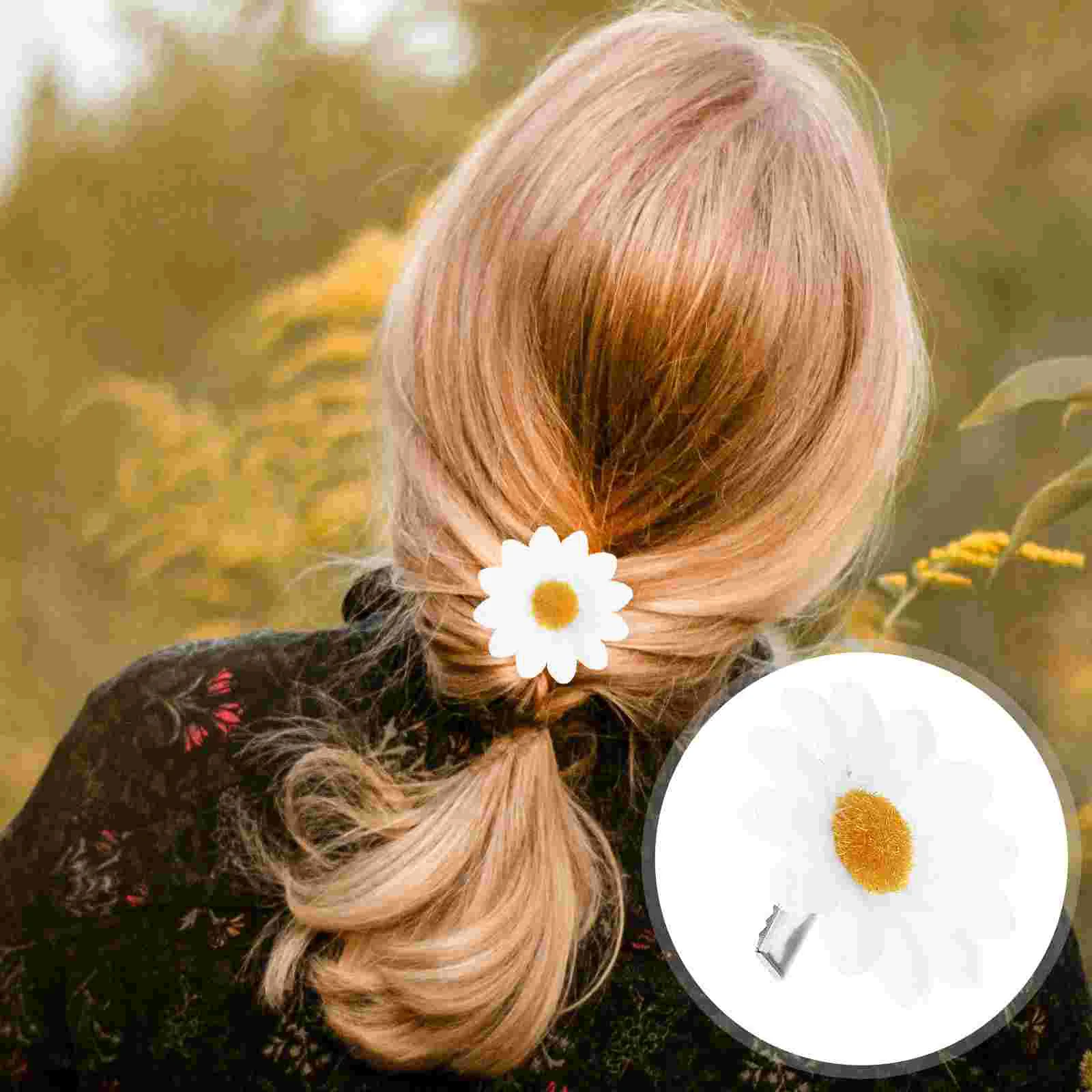 Машинка для стрижки волос для девочек, Машинка для стрижки волос с маргаритками, искусственные цветы, аксессуары для волос для женщин и девушек, белая