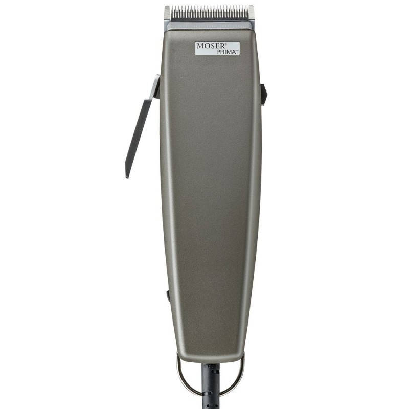 Moser Primat Titanium (1230-0053) – профессиональная машинка для стрижки с пивотным двигателем и регулируемым фиксированным ножевым блоком. Надежный пивотный (анкерный) двигатель служит гарантией продолжительной службы и отличных результатов, так как при потреблении 15 Ватт электричества он обеспечивает скорость в 3000 движений в минуту и высокий уровень усилия на срезе, что дает возможность стричь любой тип волос и не делать частые перерывы в работе. Важное достоинство и определяющая для многих покупателей характеристика – это регулируемая 6-ступенчатая длина среза высококачественного ножевого блока с прецизионной заточкой Star Blade. Длина среза выставляется при помощи технологии Multi Click от 0,7 до 3 мм. Ширина среза составляет 46 мм. Идущие в комплекте насадки при желании увеличат длину среза на 4,5 и 9 мм. Антикоррозийное покрытие защитит нож от ржавчины при работе с влажными волосами. Корпус машинки Moser Primat имеет характерные стильные черты и изготовлен из прочного долговечного пластика. Габариты и вес являются стандартными для профессионального инструмента и составляют 180x67x42 мм при весе 620 грамм. Уровень шума и вибрации при работе минимальный.