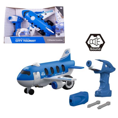 Самолет-конструктор, с дрелью (работает от батареек) и отверткой. Конструктор позволит ребенку почувствовать себя настоящим механиком и с помощью отвертки, собрать и разобрать машину. Самолет со звуковыми эффектами.