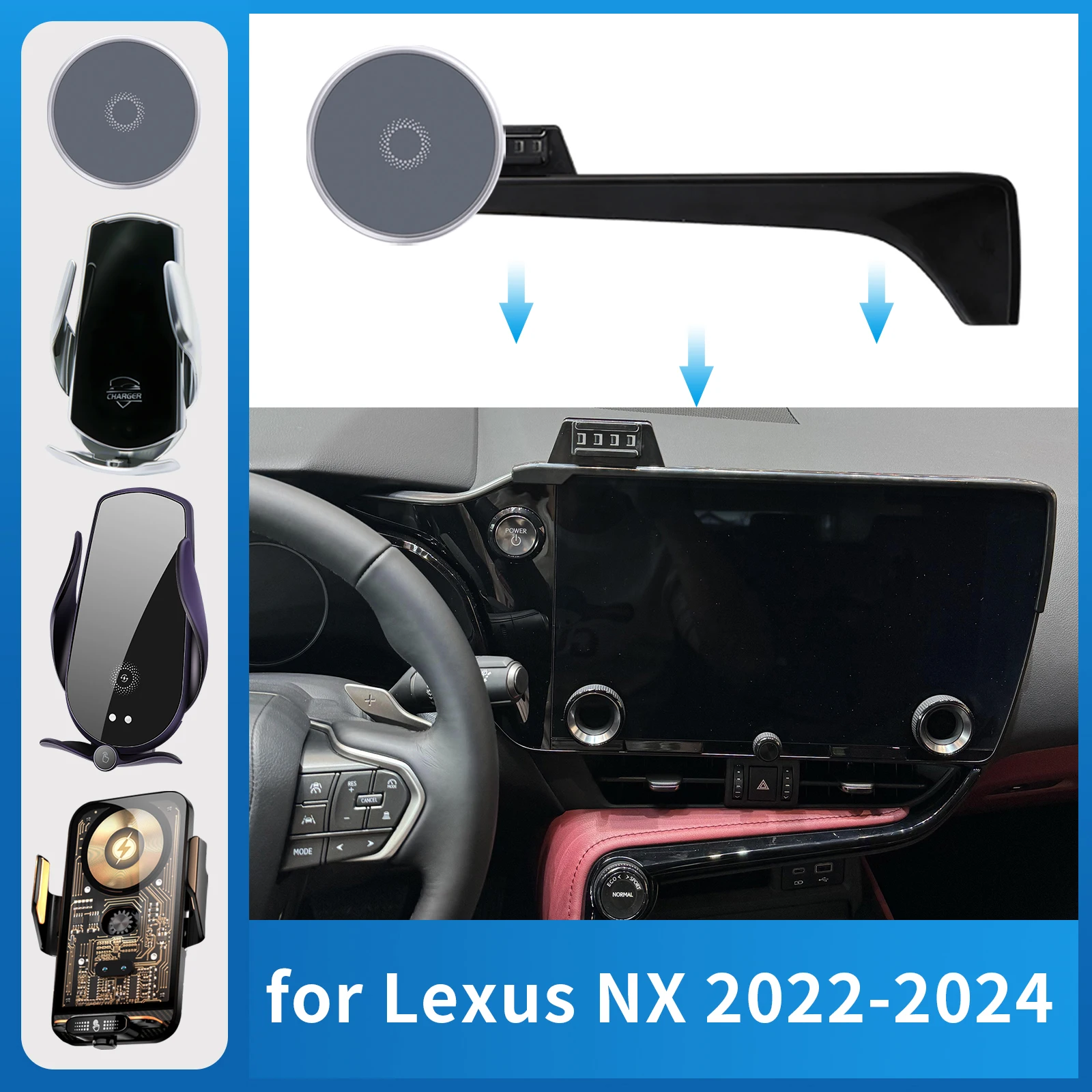 for Lexus NX 2022-2024 (14in) Car Phone Holder Screen Fixed Navigation Bracket Base Wireless Charging