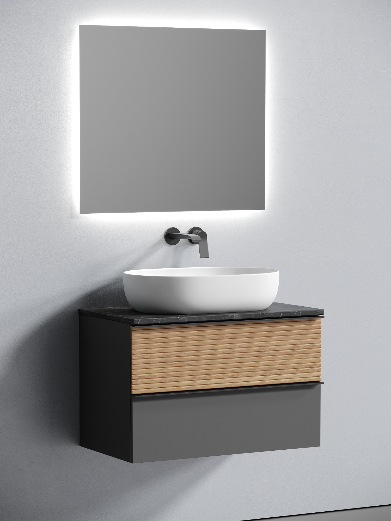 Мебель для ванной Sancos Delta 80 подвесная, столешница black sky, дуб красный/графит (без отверстия под смеситель), Дуб/серый, Delta DL80GR