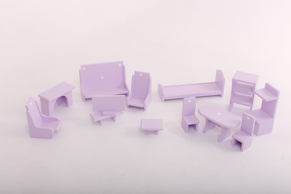 Предлагаем Вашему вниманию комплект мебели для кукольного домика. В набор входит 13 элементов мебели для каждой комнаты, соответствующие назначению каждой из них. Мебель выполнена из материалов высокого качества и гипоаллергенная для ребенка. Вы можете выбрать любой цвет мебели, подходящий под Ваш домик. Комплект мебели идеально дополнит домик для кукол и значительно разнообразит игру. Такая сюжетно-ролевая игра поможет развить фантазию ребенка и усовершенствует его речь. Все элементы комплекта мебели продуманы до мелочей, они не имеют острых углов и неровностей, что обеспечивает безопасность для ребенка во время игры. Также ребенок может с легкостью передвигать мебель из одной комнаты в другую и развивать, таким образом, свое воображение.