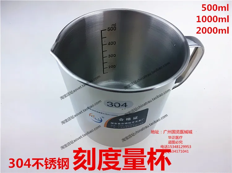 Медицинская модель 304, утолщенная мерная чашка из нержавеющей стали, Цветочная чашка, объем 500, 1000, 2000 мл