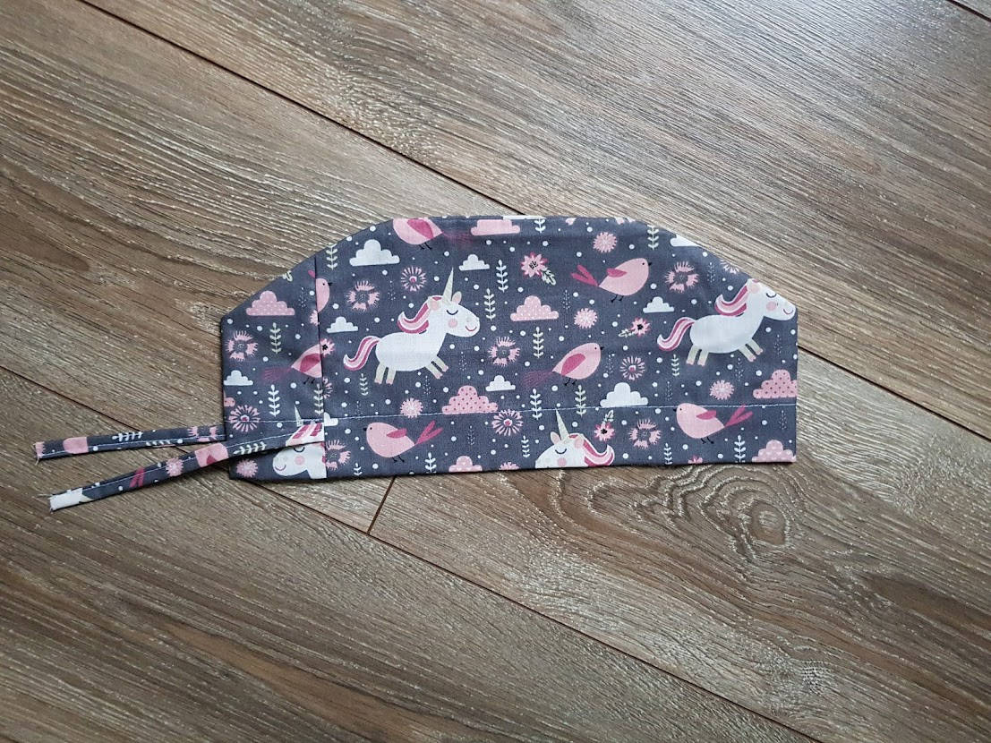 Медицинская шапочка с принтом "Единорожки пудра", Серый
