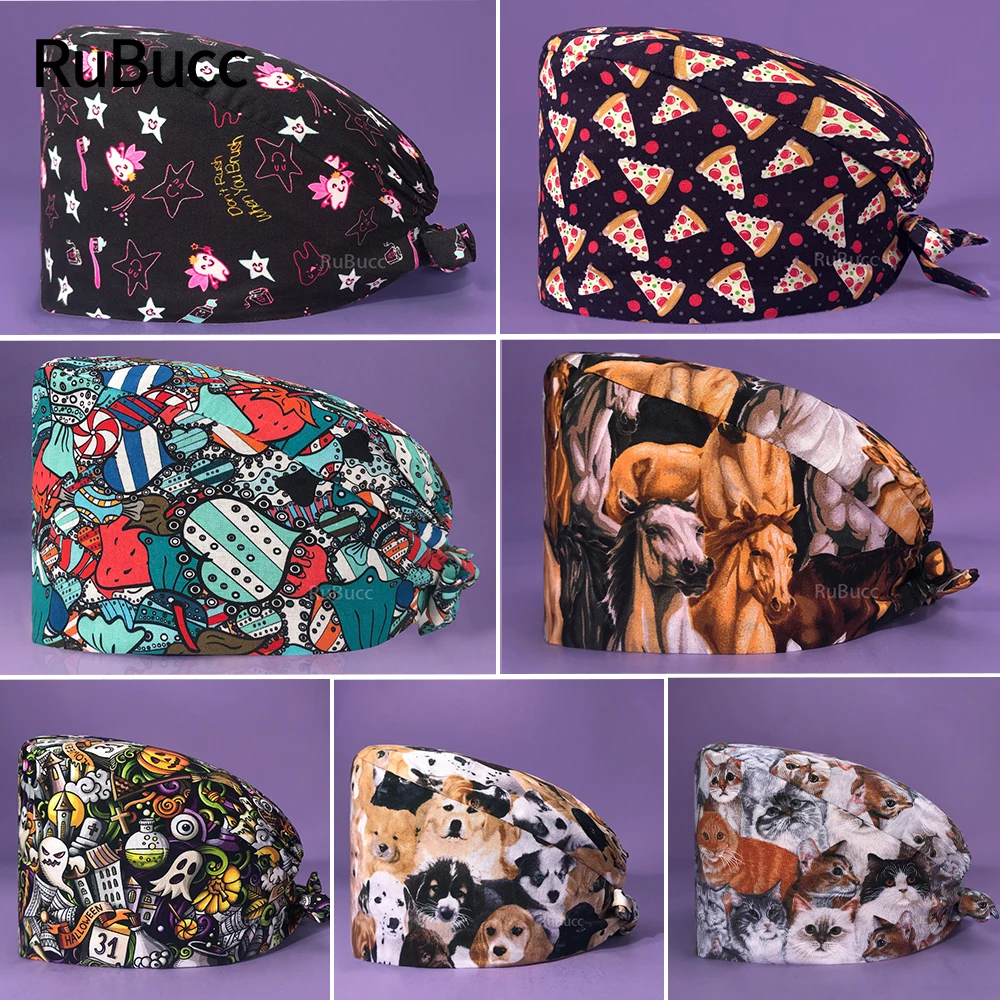Медицинская шапочка унисекс, 100% хлопок, с завязкой сзади, хирургическая шапочка, медицинская шапочка
