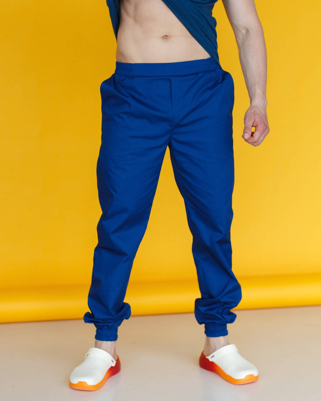 Модель штанов джоггеры, на резинке в области талии и лодыжки, также имеют два вместительных кармана.