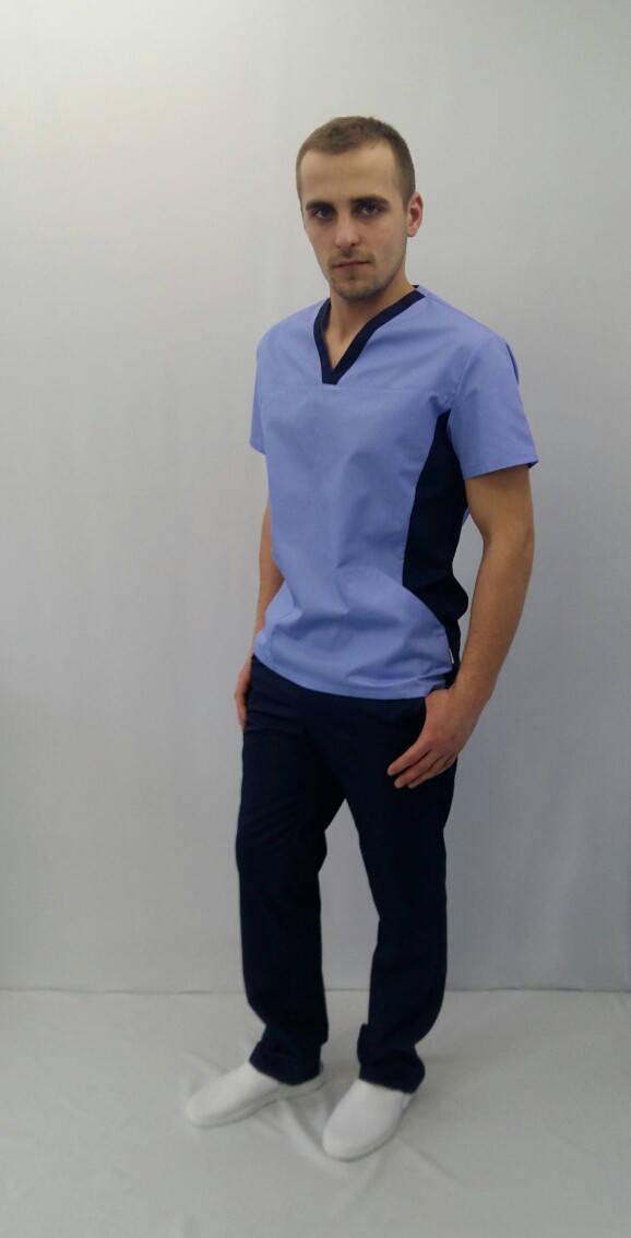 Куртка мужская хирургическая полуприлегающего силуэта с отрезными бочками, разработанными нашими специалистами компании Style так, чтобы каждая деталь была удобной, функциональной и учитывая при этом практичность и ультрамодность модели. На полочке расположены накладные карманы, в нижних вход под наклоном, что придает комфортность этой модели. V-вырез, втачные короткие рукава. Отделкой костюма служат отрезные бочки и горловина выполненные из отделочной ткани.