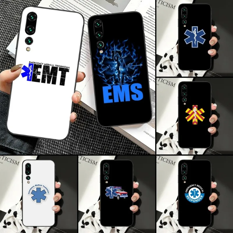 Медицинский спасательный чехол для телефона Huawei P50 P40 P30 Pro Lite P Smart 2021 2019 Magic 3, мягкий черный чехол для телефона