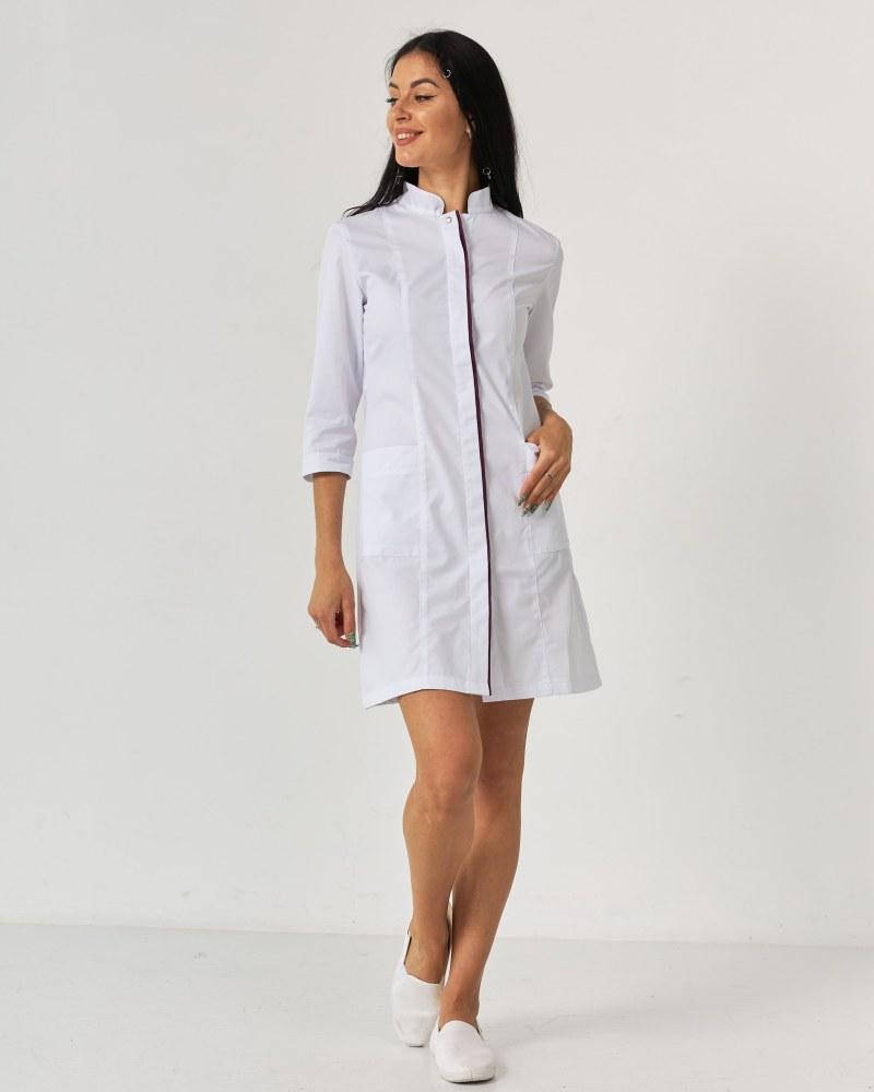 Медицинский халат Сакура белый-фиолетовый