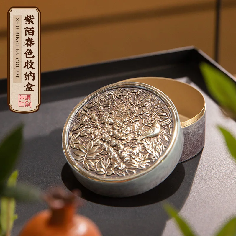 Медная пурпурная пружинная медная коробка для хранения ювелирных изделий в китайском ретро-стиле
