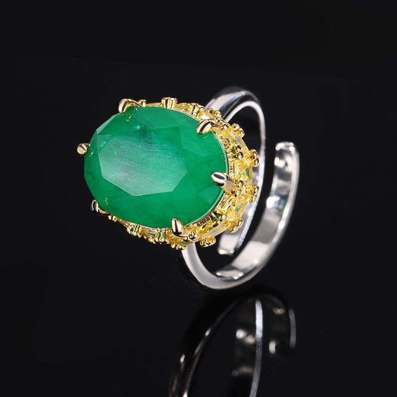 Медное золотое покрытие с бриллиантами, небольшое квадратное овальное кольцо в форме яйца с большим розовым бриллиантом, модное роскошное женское кольцо с красным корундом и изумрудом