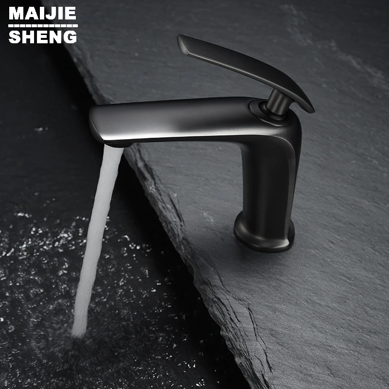 Медный серый смеситель для раковины в ванной комнате простой смеситель для горячей и холодной воды утолщенный Черный кран