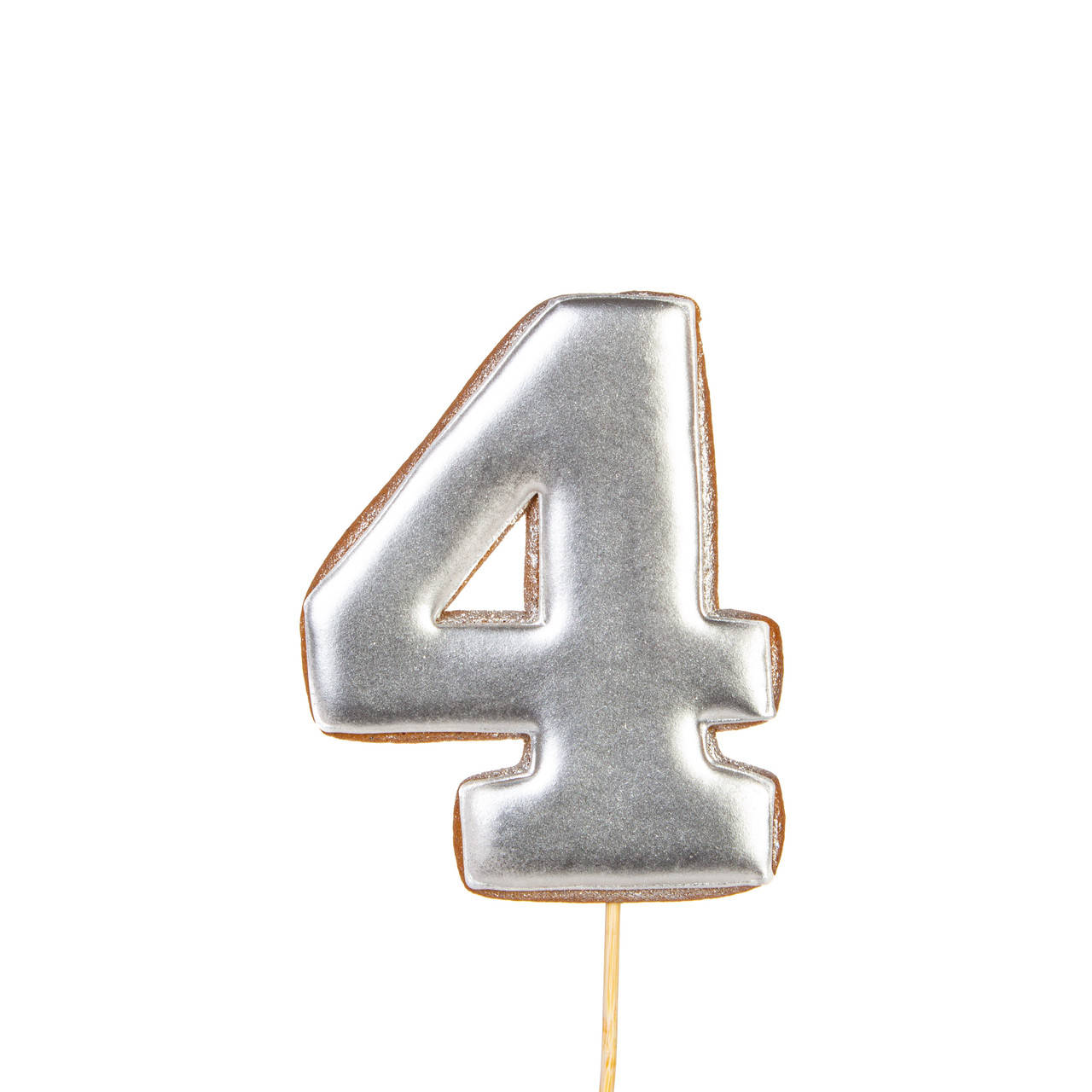 Медово-имбирный пряник "Цифра 4", серебряный, Белый