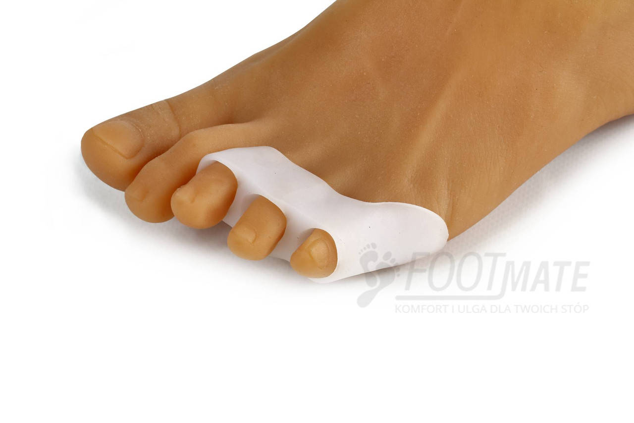 Межпальцевая перегородка FootMate G057 - сделана из мягкого геля, разделяет три пальца на ноге, не позволяет им сгибаться вниз. Поддерживает анатомически правильное расположение пальцев. Это помогает уменьшить боль и дискомфорт. Перегородку используют люди с проблемами молоткообразных и деформированных пальцев,Универсальный размер. Подходит для ежедневного использования.