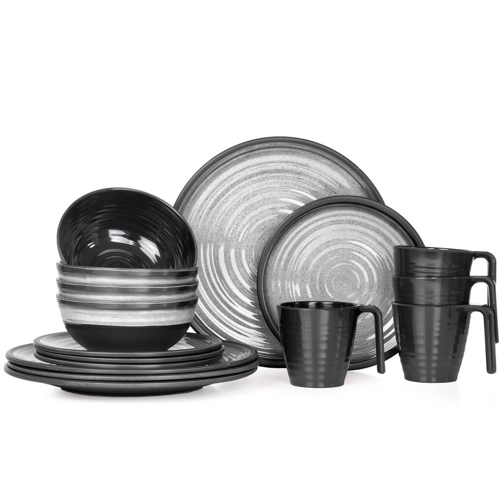 Меламиновый набор посуды для кемпинга, 4 человека, каменно-серый + 4 чашки, каменные кофейные чашки, кружки, посуда, посуда для пикника, барбекю Moritz