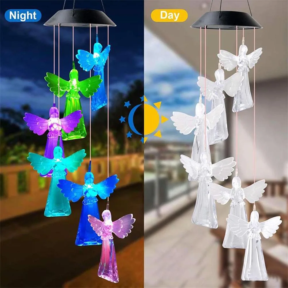 Меняющий цвет ветряной колокольчик на солнечной батарее, светильник с ангелом, водонепроницаемая ветряная колокольчика для дома, улицы, са...