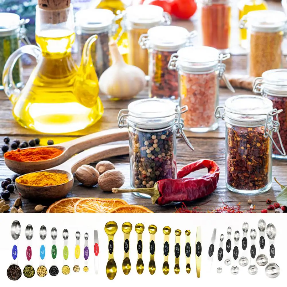 Мерные ложки из нержавеющей стали, двухсторонняя Штабелируемая мерная ложка, набор из 8 мерных ложек с магнитом для сухой и жидкости