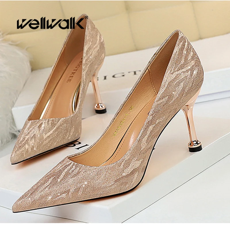 Металлик; Туфли-лодочки; Женская модная обувь; Туфли на высоком каблуке с острым носком; Свадебная вечеринка; Женские модельные туфли; Мокас...
