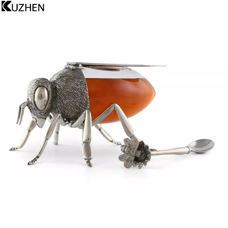Металлическая банка для меда, банка для хранения кухонного стола, декоративные украшения, прозрачная банка для приправ, кухонная банка для ...
