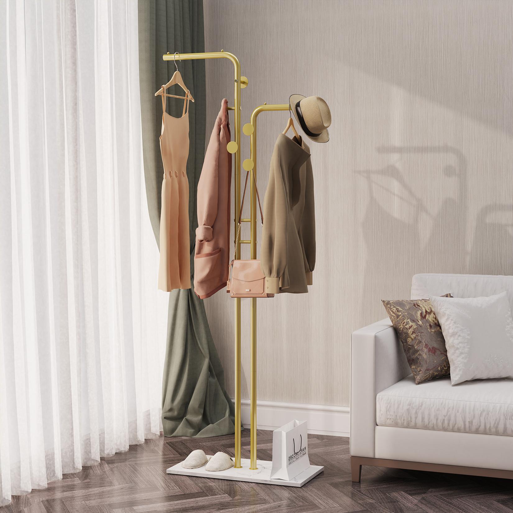 Металлическая вешалка для одежды, отдельно стоящая, с основанием из натурального мрамора, вешалка для одежды в прихожей с 5 крючками, вешалка для одежды в холле отеля золотой