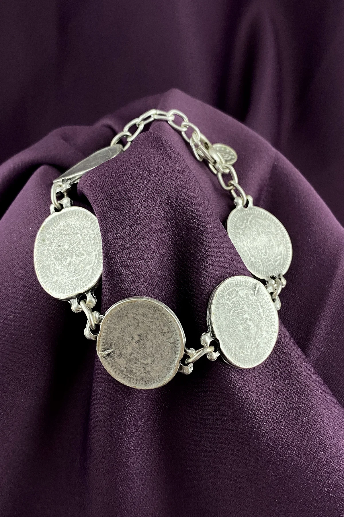 Металлическая круглая металлическая модель, античный посеребренный браслет-цепочка