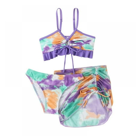 Sunwukong Girl s 3 Piece Swimsuits Printed Bikini Bathing Suit with Cover Up