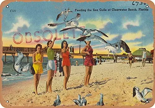 Металлическая табличка-открытка с изображением Флориды-питание морских чайков на пляже Clearwater, Флорида-винтажный ржавый Настенный декор дл...