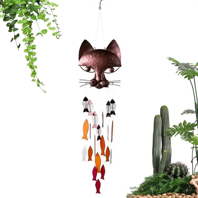 Металлические ветряные колокольчики в виде сома, винтажные ветряные колокольчики с котом и рыбой, дизайнерские эстетические креативные оконные декорации, винтажные металлические украшения для дома