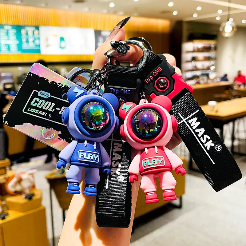 Металлический брелок для ключей с медведем, трикотажный аксессуар серого, фиолетового, розового, зеленого цветов, с милой куклой, для девочек, мальчиков, пар, влюбленных